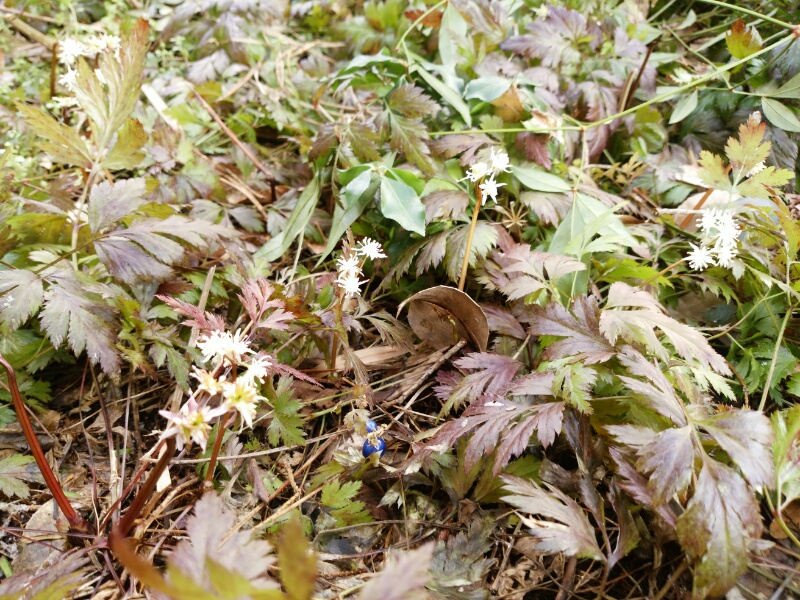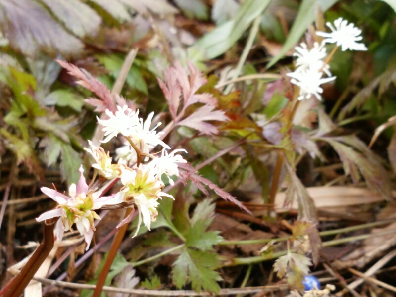 芹葉黄連も木陰の下でひっそりと小さなかわいい白い花を咲かせていた。