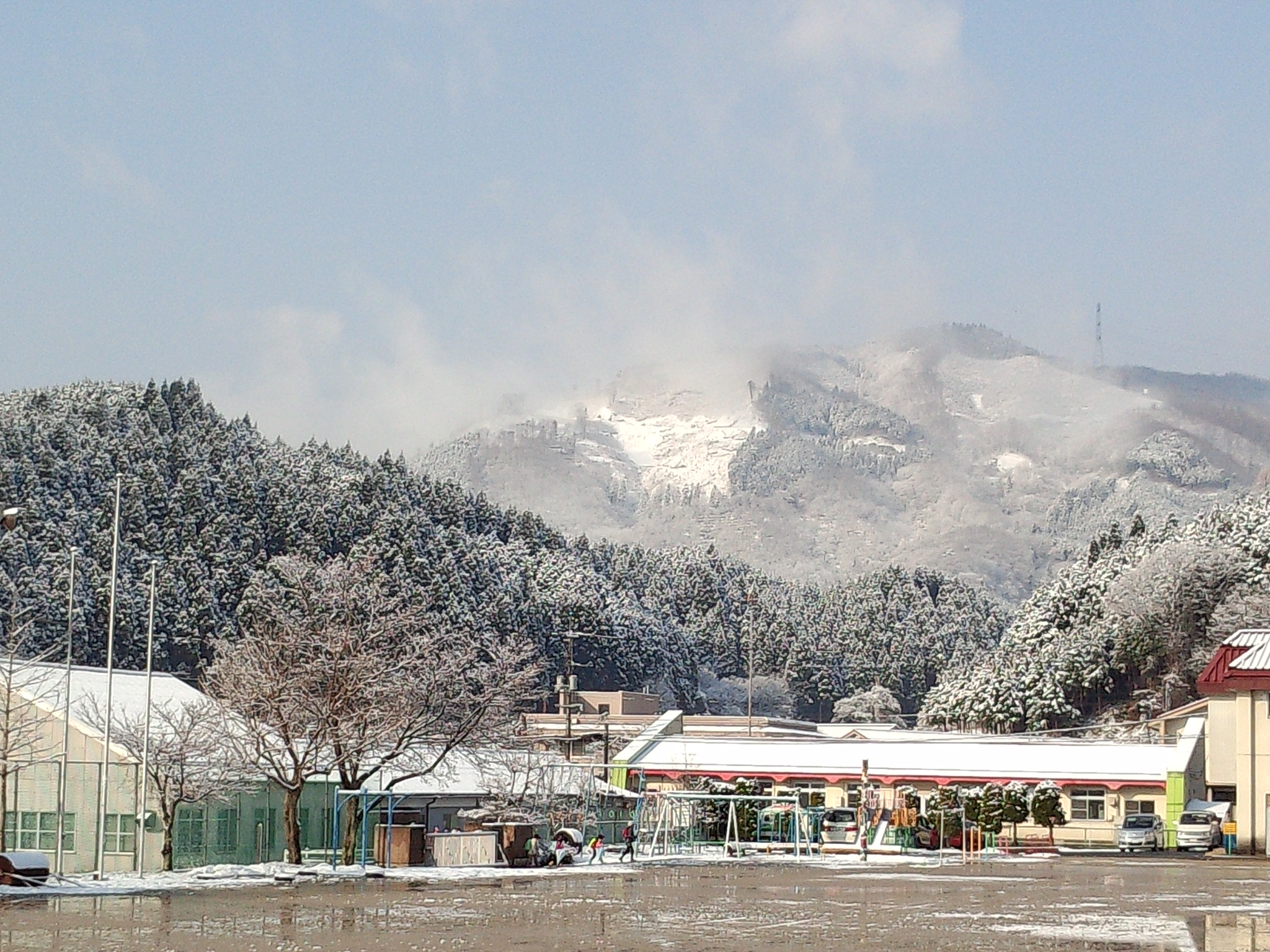 桜の花も五分咲だろうかとおもわれるこのごろ、朝から雪で真っ白になる。